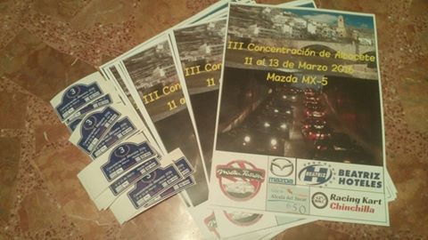 Mañana empieza la Concentración con muchos nervios y con muchas ganas, mañana empezaremos con una cena de bienvenida para la gente hospedada a las 10 de la noche en la entrada del Hotel para salir para Albacete aun restaurante muy acogedor, el sábado empieza el gran dia con la ruta, la hora de la kdd es de 9,30 de la mañana y la salida será 10,15 de la mañana, allí saldremos hacia la ruta por la espectacular carretera de curvas pegando a las hoces del Jucar, llegaremos a Alcala del Jucar al aparcamiento de al lado del puente pegando al rio sobre las 11,15, visitaremos el pueblo con una guía turística, sobre las 3 de la tarde saldremos al restaurante, allí disfrutaremos de una comida agradable con los miateros y reparto de regalos por sorteo gracias a Mazda España, sobre 5,30 a 6 de la tarde saldremos hacia Albacete llegaremos al Hotel donde haremos un pequeño descanso del dia y sobre las 9 cenaremos en el hotel, después quien quiera saldremos hacia Albacete por la noche a tomar unas copas y disfrutar de la noche Albaceteña, al dia siguiente quedaremos a las 11,15 en la puerta del hotel para salir hacia Chinchilla donde disfrutaremos con unos karts para divertirnos a lo grande con piques etc..., sobre la 13 o 13,15 saldremos hacia el pueblo donde comeremos y haremos la despedida de la concentración, será un finde muy completo y espero que sea del agrado de todo el mundo, nos vemossssssssssssssss