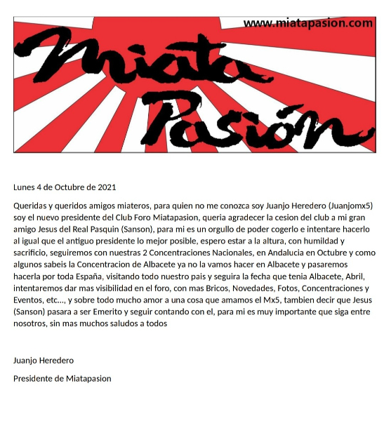 Queridas y queridos amigos miateros, para quien no me conozca soy Juanjo Heredero (Juanjomx5)