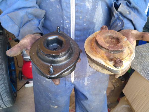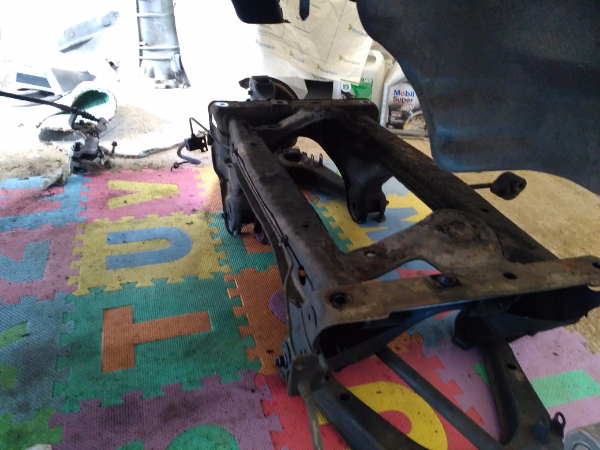 despues de bastante tiempo sin grandes cambios(solo cambie las borbet C por unas JR11 en 16x7.5 y pintadas en azul impreza y filtro de aire de sustitucion pipercross) ha llegado la hora de meterle mano a fondo al pequeño. ya le toca a su edad y procedencia. he empezado a desmontarlo completo y saneamiento a fondo pieza a pieza.he empezado por la parte trasera que es la mas facil y accesible. metere subchasis nuevo, trapecios todos nuevos, todos los silemblock nuevos, estabilizadoras mas duras, latiguillos metalicos...