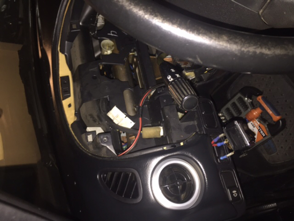 Lo primero es desmontar el cuadro de instrumentos, para ello hay que desarmar el marco de la columna de dirección (4 tornillos) y quitamos los dos tornillos que sujetan la cúpula (por llamarla de alguna manera) del cuadro de instrumentos. Una vez quitado el marco de la columna (la pieza hay una pestaña a cada lado que sujeta las piezas, tiramos con decisión de la cúpula hacia el volante, sin hacer palanca ni llevarla hacia arriba, solo hacia nosotros y sale sin romperse.