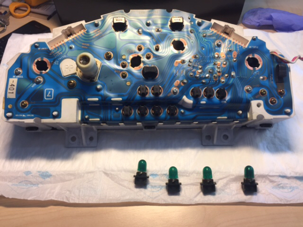 El kit lo pedí con LEDs para cambiar la iluminación del cuadro, espero que sean luces estables, porque a otro coche al que se las cambie, a veces se apagan y encienden solas.