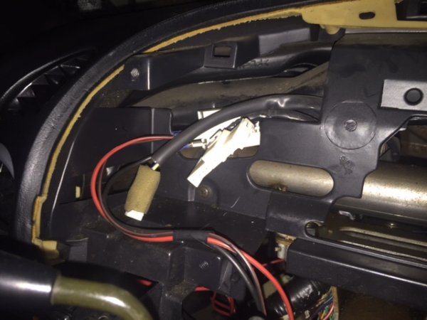 Hacer funcionar el mando OEM será fácil, identificar + y - del sistema y darle corriente al bombillo desde los mismos cables que van al mando de al lado (del que he descubierto se tiene el microbombillo fundido, pero que si conecto ahí el otro mando, si que se ilumina. Lo que parece más difícil ya es hacer que encienda el testigo del cuadro de instrumentos. Veo dos opciones: La primera es usar los dos cables que salen de ese testigo para conectarlos de alguna manera al propio mando, y que haga funcionar el testigo. La otra es conseguir juntar con cables no OEM mi mando al arnés del coche que va hacia el rele, fusibles y conector que si tengo... esta es la opción deseada puesto que es la que más se acerca a lo OEM, pero tendría que trastear con los cables. Desarmé el salpicadero para intentar seguir el cable que sale del cuadro (el propio del testigo específico) pero lo pierdo justo detrás y desde abajo no lo identifico.