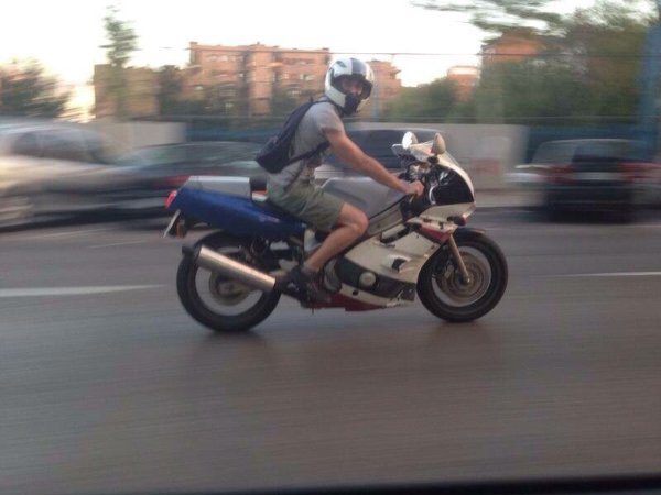 El otro juguete es una fzr que adquiri por un piñazo de mi mejor amigo y estaba para tirar de todo menos de chasis y que con el tiempo la he ido reparando poco a poco, actualmente esta imprimada y en proceso de ser pintada a lo marlboro de la epoca con plastidip jejejeje