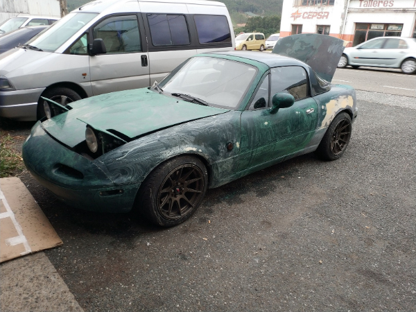 Y por ultimo con lo que me encuentro ahora mismo, chapa y pintura, hace tiempo que tengo el coche parado con todo el tema este pero por temas de trabajo mio, y de mi padre que al final es el mecánico (de motos pero mecánico al fin y al cabo), que sin su ayuda voy jodido sobre todo en el tema pintura, pues poco puedo avanzar. Como escribí en el primer mensaje de todos, el coche estaba bastante mal de chapa, tenia oxido y muchísimos rallazos. Por lo que toca pintarlo entero, del verde racing green de serie, además le voy a montar un lip delantero, y unas taloneras, que me gusta mucho como le quedan.